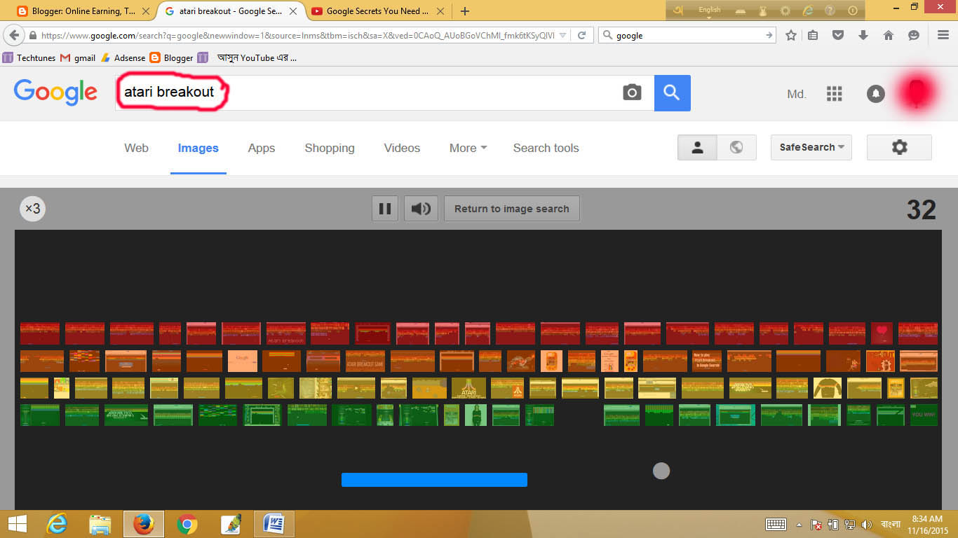 secret related to a DX ball type game. In the Google Image search just search atari breakout. The Google will
